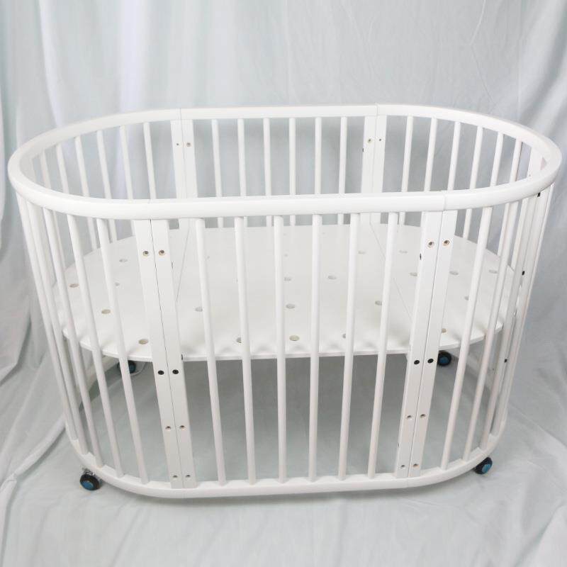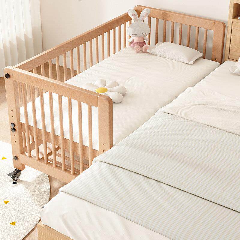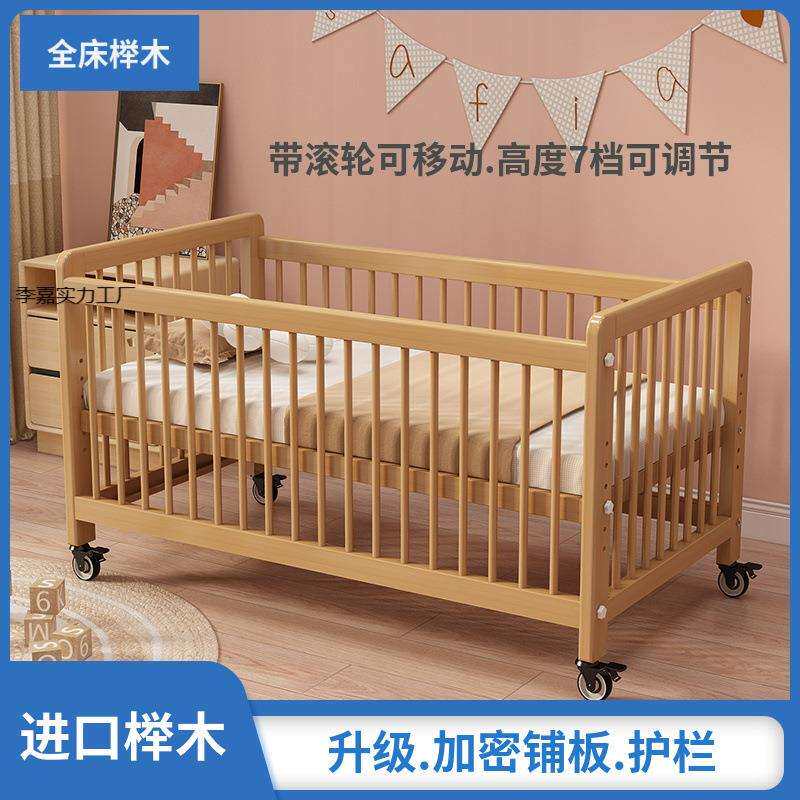 榉木婴儿床加宽大床边宝宝床用实木新生儿高度可调节带滚轮可移动