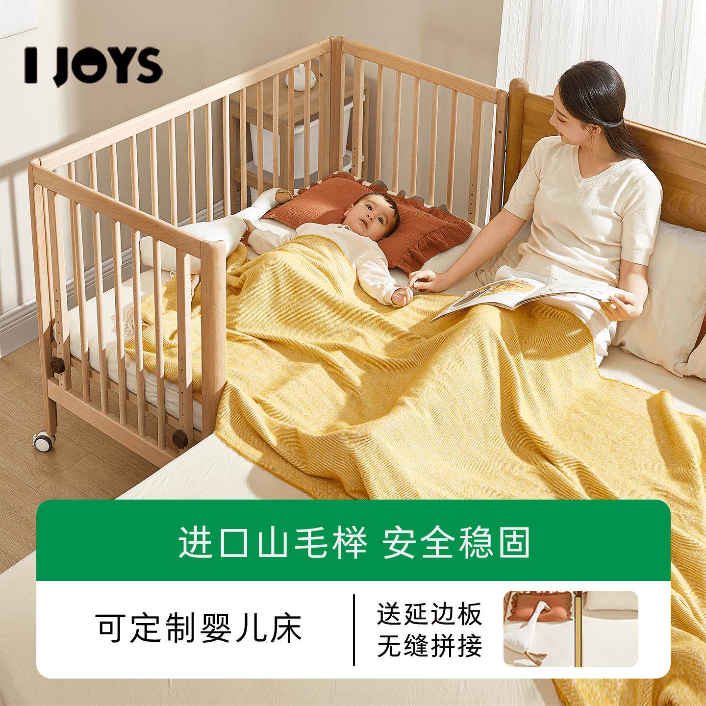 ijoys新生婴儿床多功能实木拼接大床山毛榉宝宝床可移动带滚轮