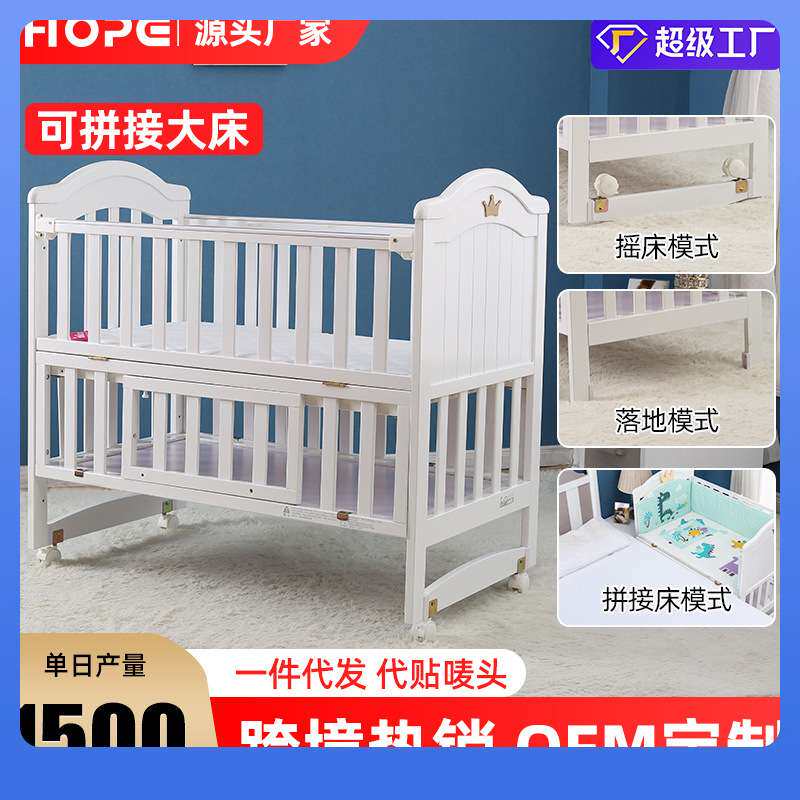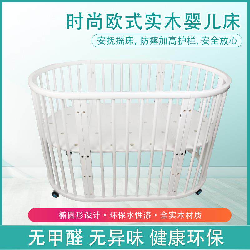 ?婴儿床多功能实木床油漆白床新生儿摇篮床0-3岁宝宝童床带滚轮