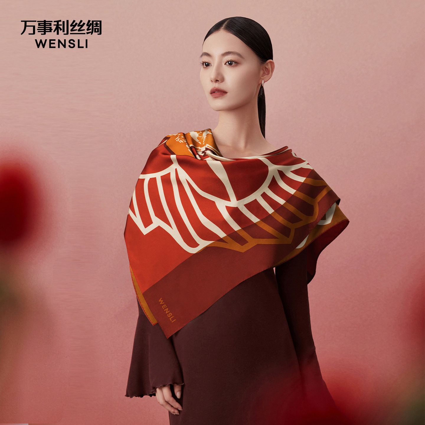 万事利26春夏新品真丝丝巾大方巾披肩百搭围脖送礼礼盒好运连连