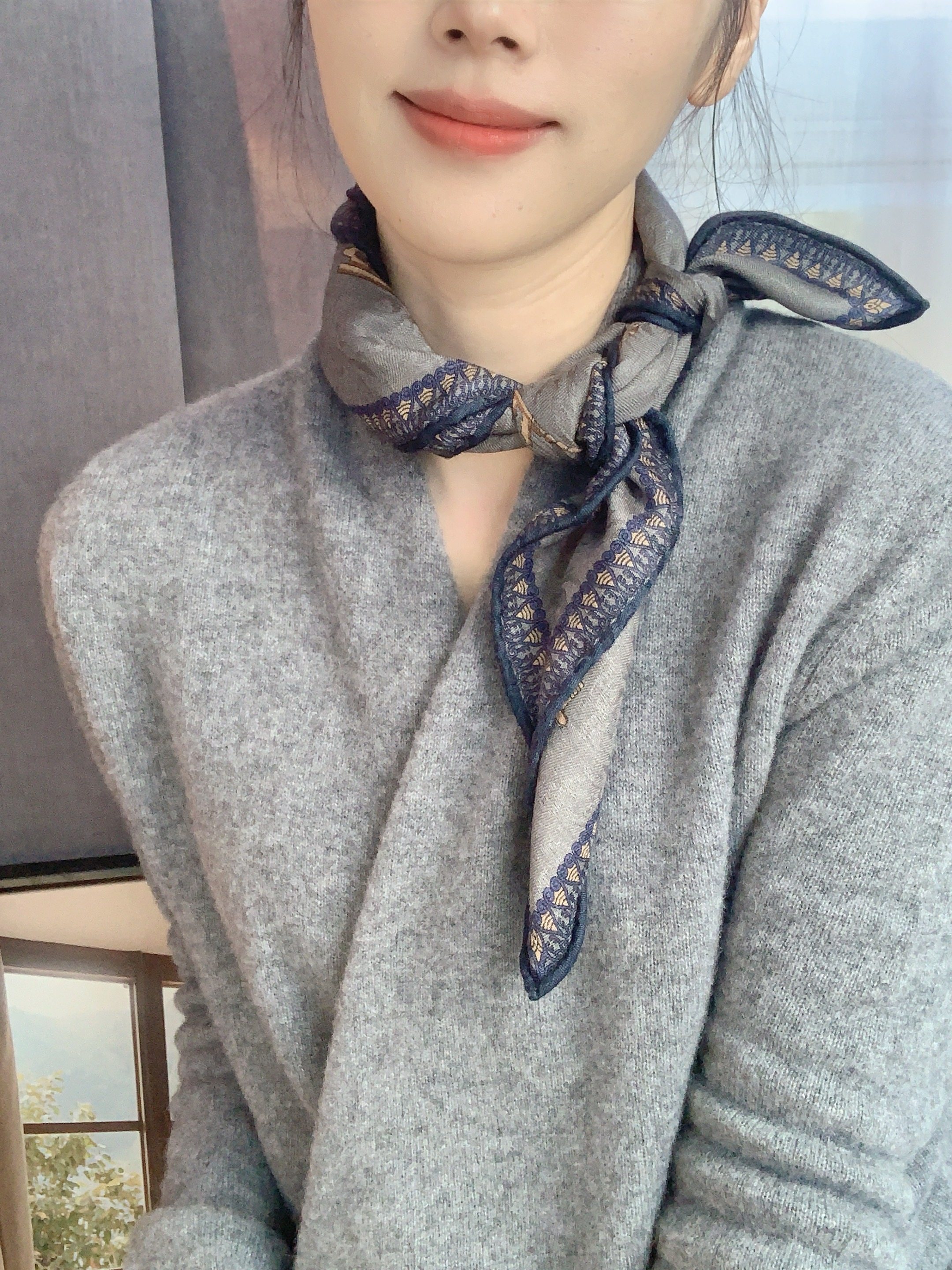 灰金钥匙 老钱风真丝羊毛围巾女秋冬季丝毛丝巾高级感系脖方巾65
