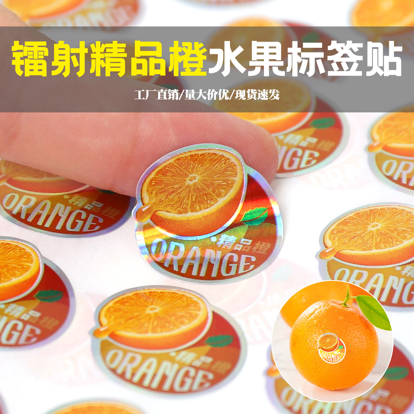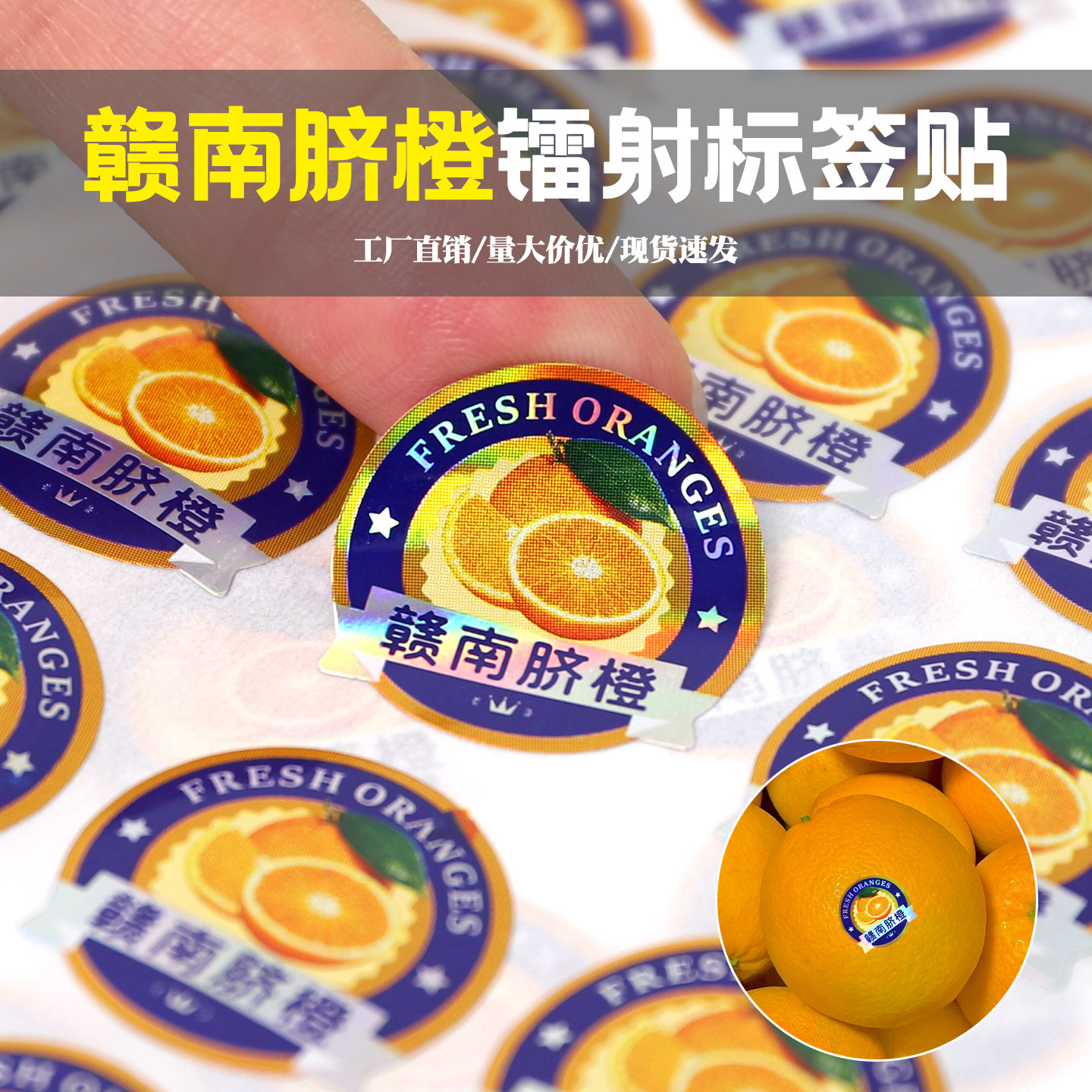 柑橘水果不干胶标签拉丝果水晶富士精品橙赣南脐橙子沃柑商标贴纸