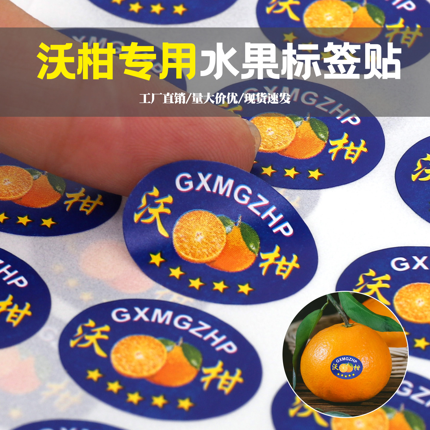柑橘水果不干胶标签砂糖桔沃柑冰糖橙爱媛血橙赣南脐橙子商标贴纸
