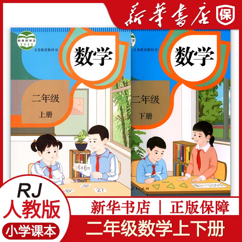 小学教材课本2二年级上册下册数学课本人教部编版2年级上下册数学书2本全套人民教育出版社人教版数学二年级下册两本装
