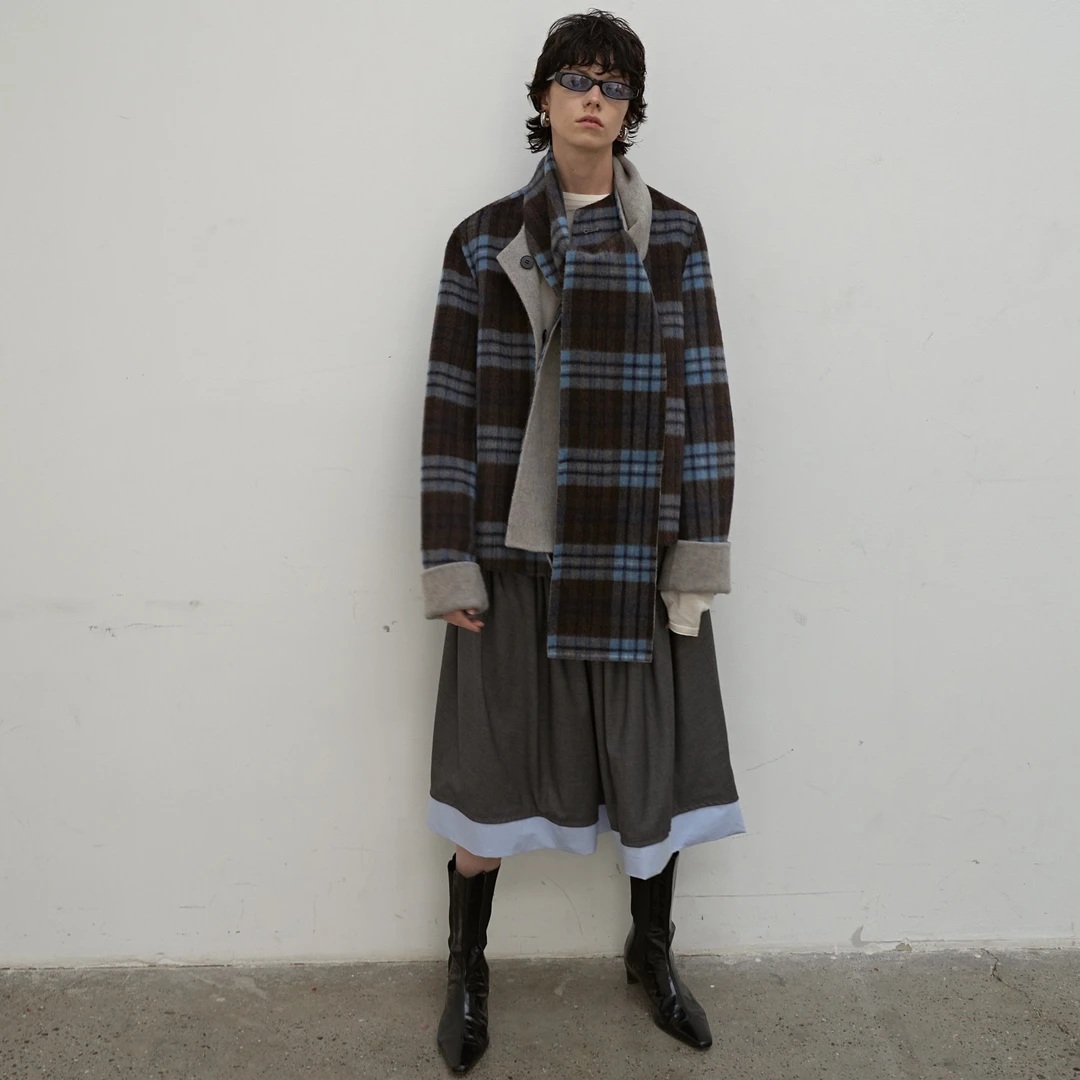 森女部落原创饼干熊格子美拉德叠穿外套毛衣女宽松秋冬装2025新款