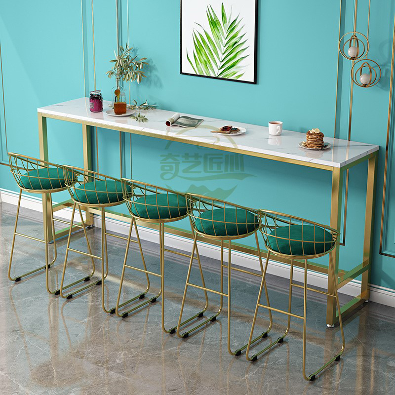 北欧大理石吧台桌长条桌酒吧桌椅组合靠墙吧台高脚桌子家用小吧台