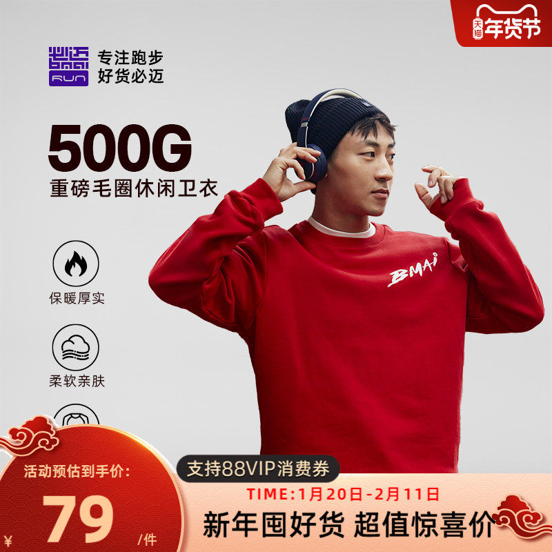 必迈运动卫衣情侣运动休闲套头长袖本命年男女款宽松红色卫衣新年