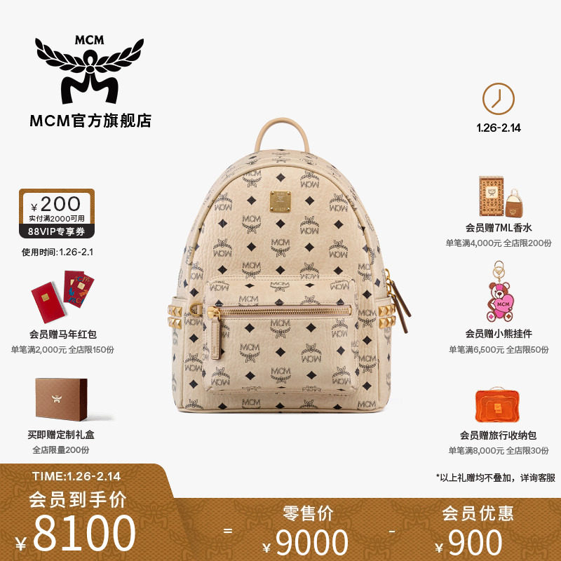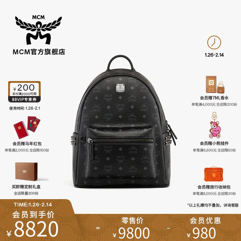 [送女友]【新年礼物】MCM STARK小号铆钉双肩男女背包