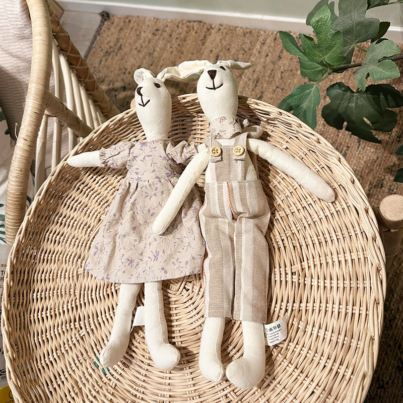 lacreme高端棉亚麻布艺兔手工玩偶客厅软装饰品宝宝娃娃玩具