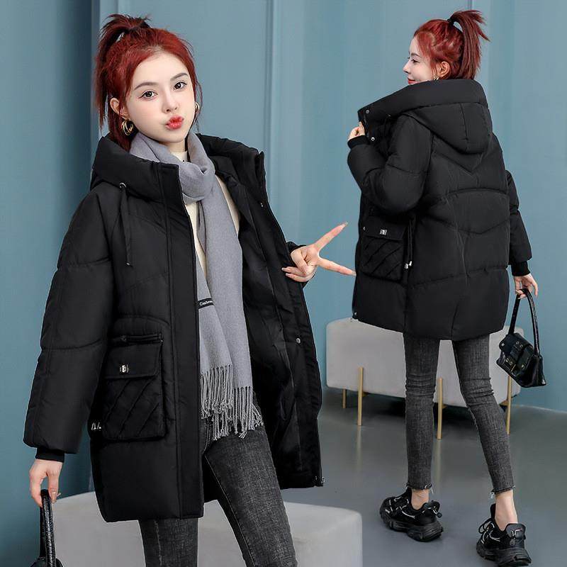 新款韩版A字款冬装简约羽绒棉衣女中长款加厚时尚外贸大码面包服