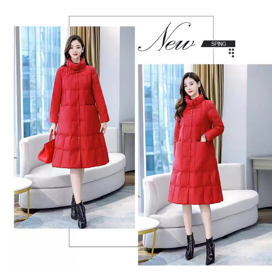 2022冬装新款韩版休闲宽松A字中长款立领羽绒棉服外套女轻薄保暖a