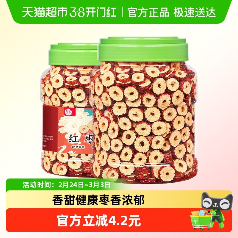 每果时光特级红枣圈500g免洗无核泡水大枣子片灰枣干年货特产零食