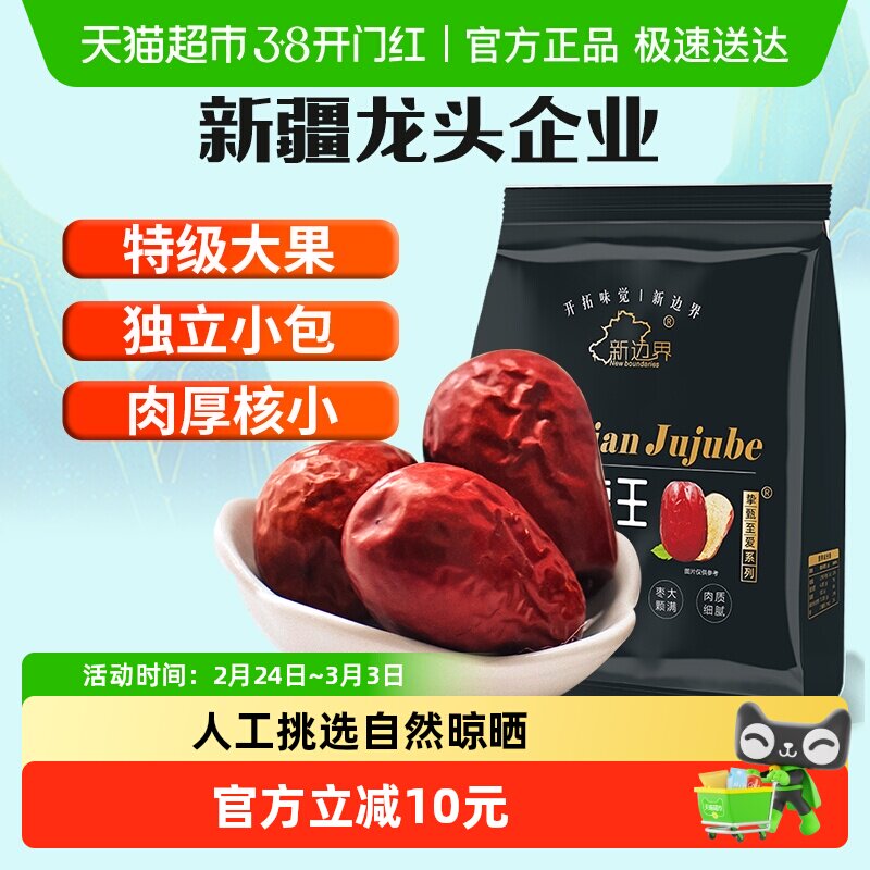 新边界特级红枣新疆枣王和田大枣500g特级大枣子5cm干果零食特产