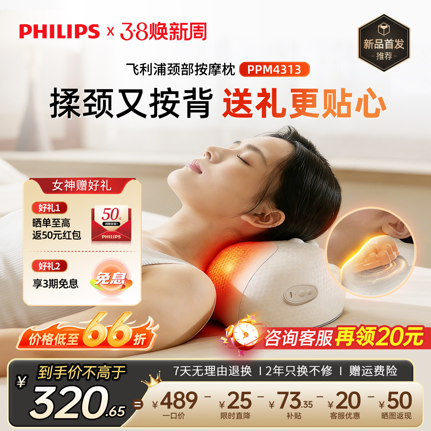飞利浦肩颈按摩仪按摩枕颈椎按摩器全身多功能热敷枕头女神节礼物
