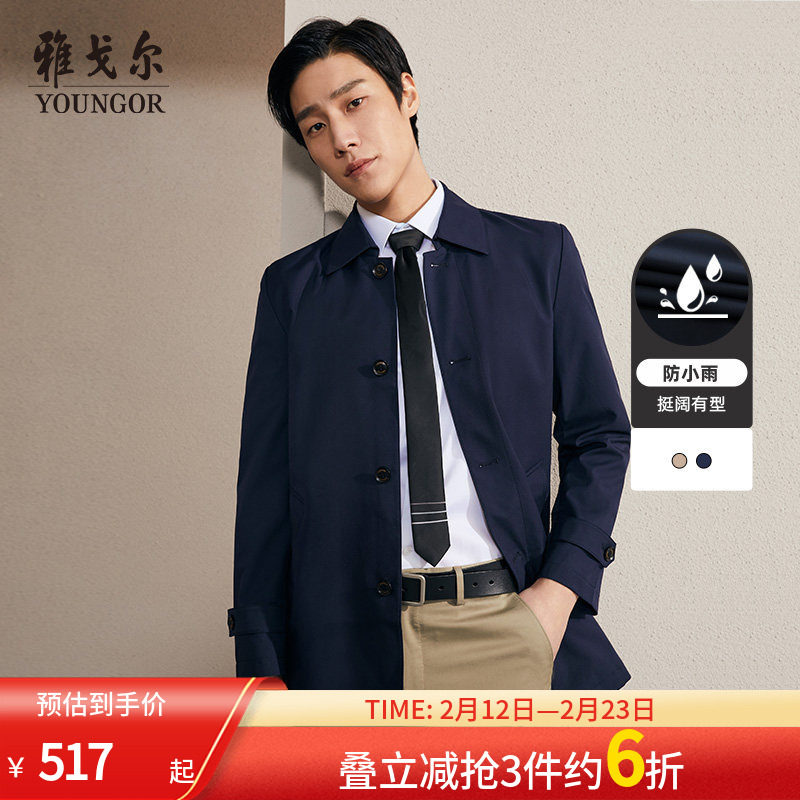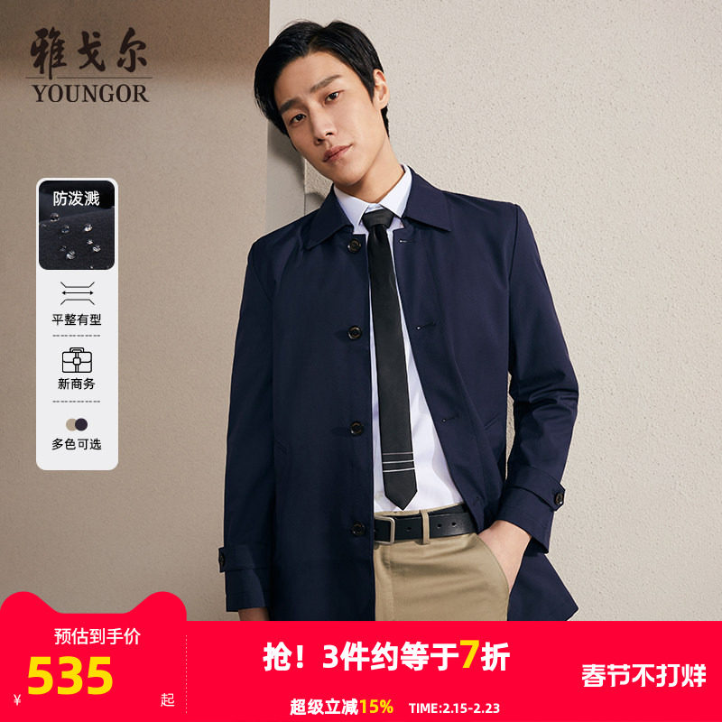 雅戈尔官方2026春季新款男士风衣行政通勤商务休闲翻领风衣外套