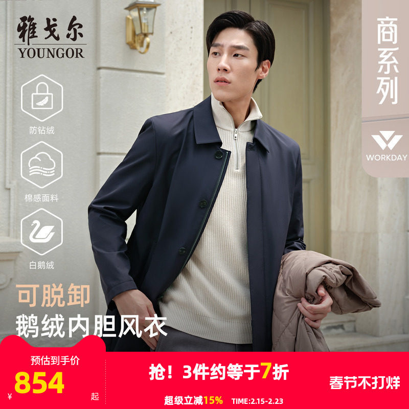 【羽绒鹅绒风衣】雅戈尔官方秋冬新品男士商务行政气质大衣外套男