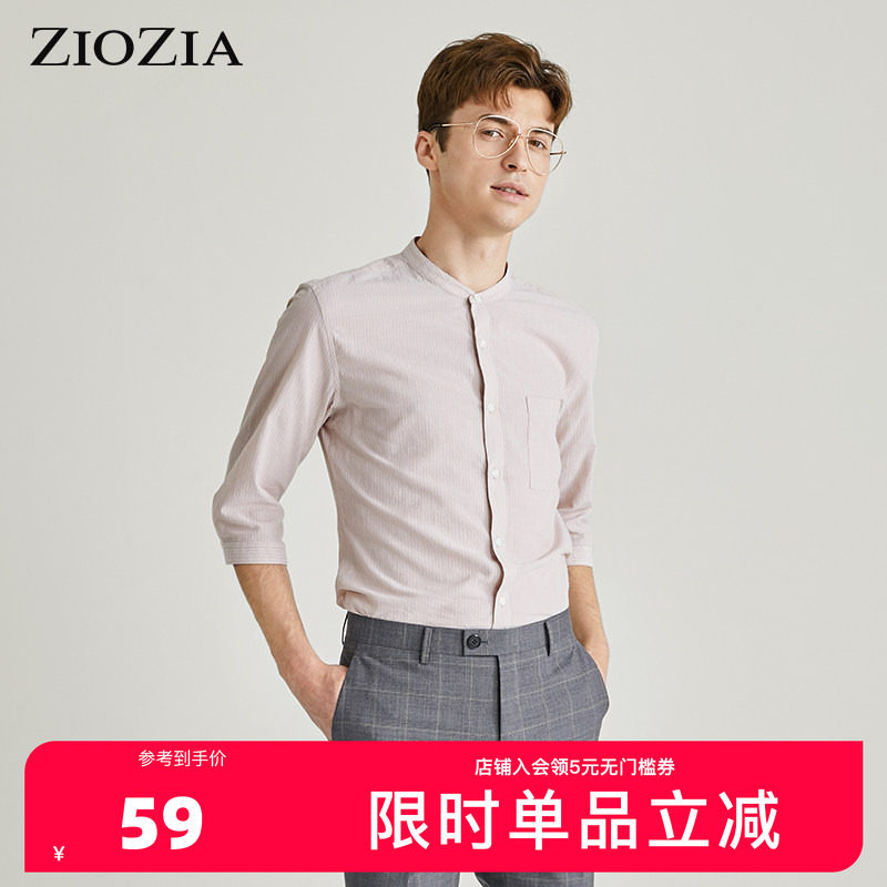 ZIOZIA九牧王旗下男装时尚小立领七分袖衬衫速干衬衣ZWC02306X