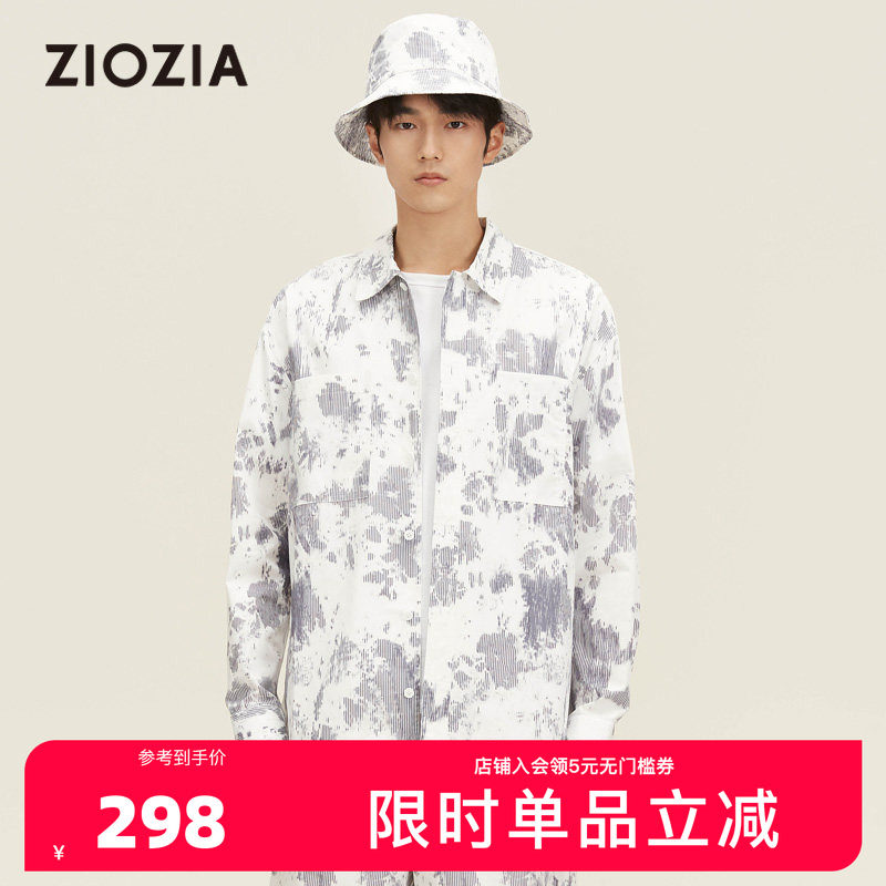 ZIOZIA九牧王旗下男装春季蓝白渐变印花长袖男士衬衫ZWCC1K04A