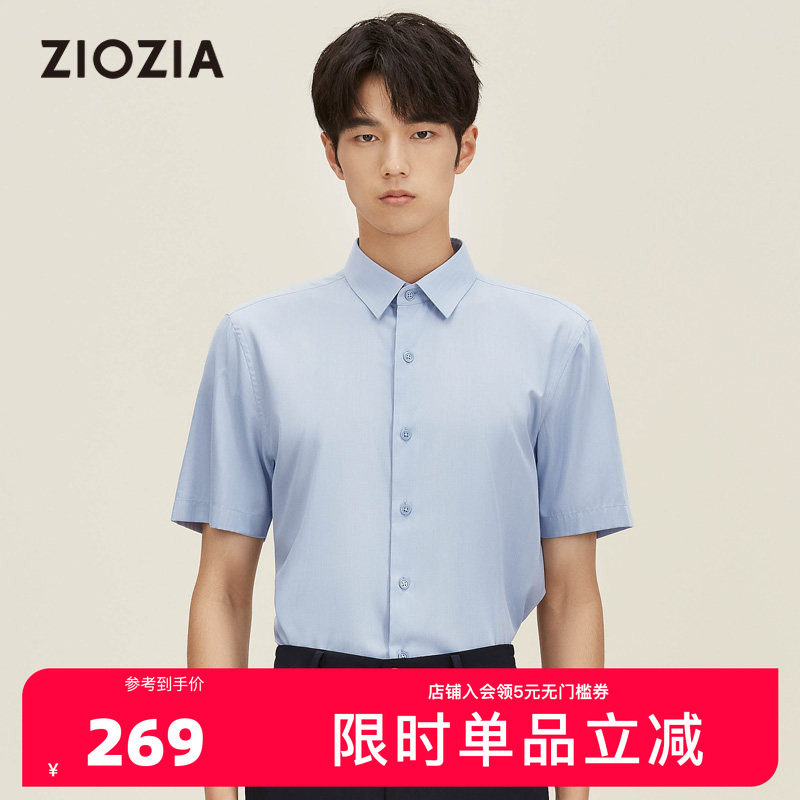 ZIOZIA九牧王旗下男装夏季商务休闲蓝色清凉透气短袖衬衫ZWBC2X32