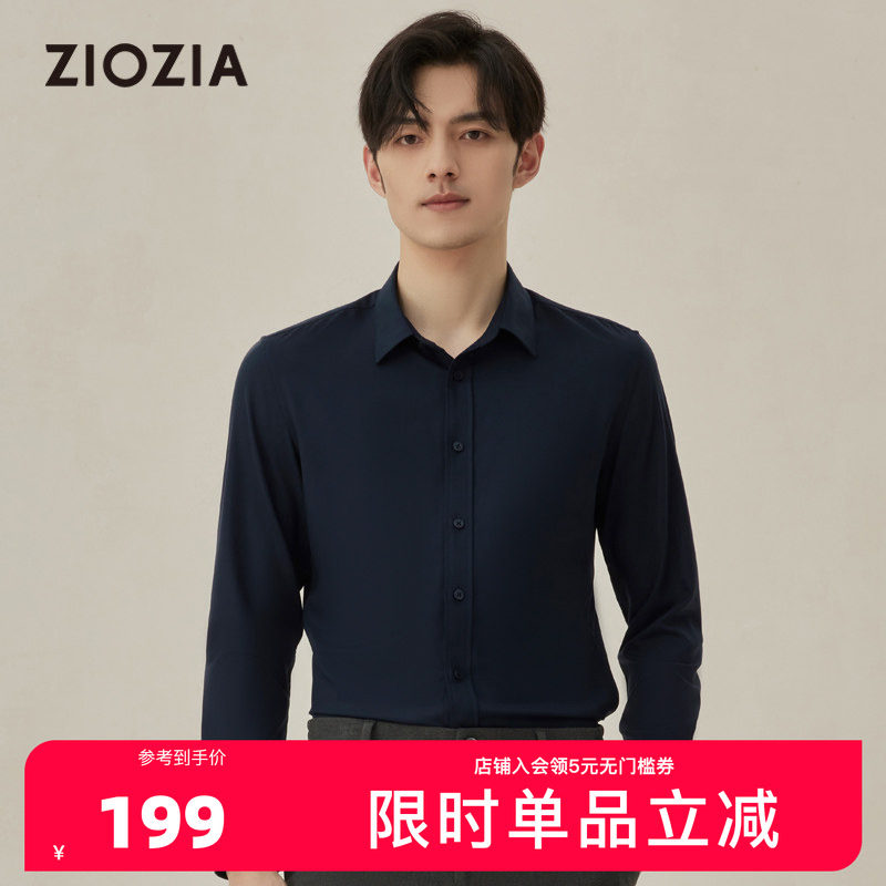 ZIOZIA九牧王旗下男装秋季商务休闲莫代尔长袖衬衫通勤男士衬衣