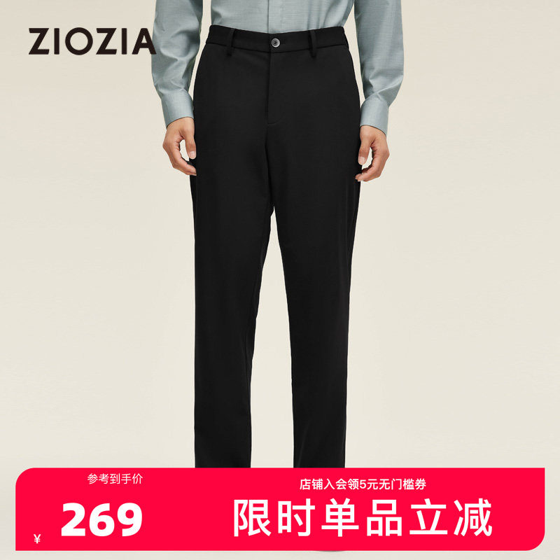 ZIOZIA九牧王旗下男装春季简约舒适高弹透气黑色休闲长裤ZPPC1Z05