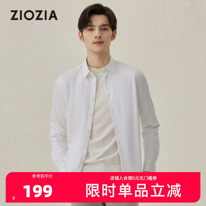 ZIOZIA九牧王旗下男装衬衫秋季莫代尔商务长袖白色衬衣ZWDC3123