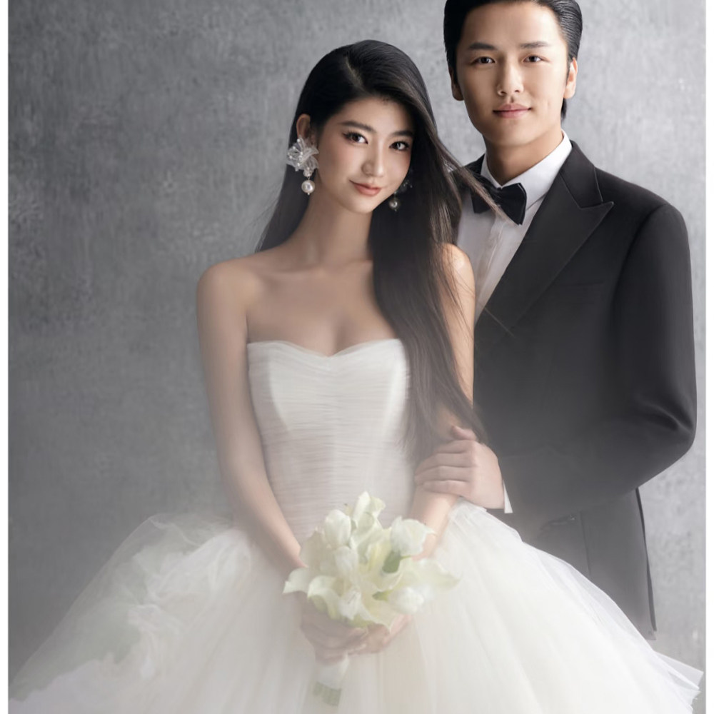 新款影楼外景旅拍蛋糕裙花神系列情侣蓬蓬裙粉色婚纱抹胸礼服拖尾