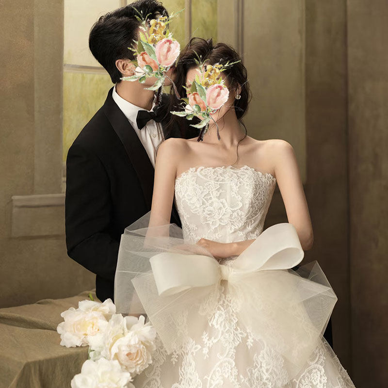 2026新款韩式抹胸婚纱显瘦公主花朵蓬蓬裙超仙梦幻森系拖尾旅拍纱
