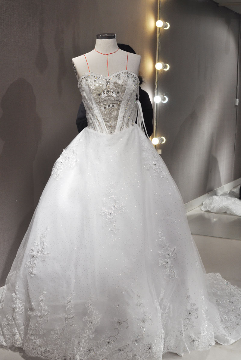 全新处理婚纱拖尾抹胸心形领口大气纯白色重工精致 广州正品大码
