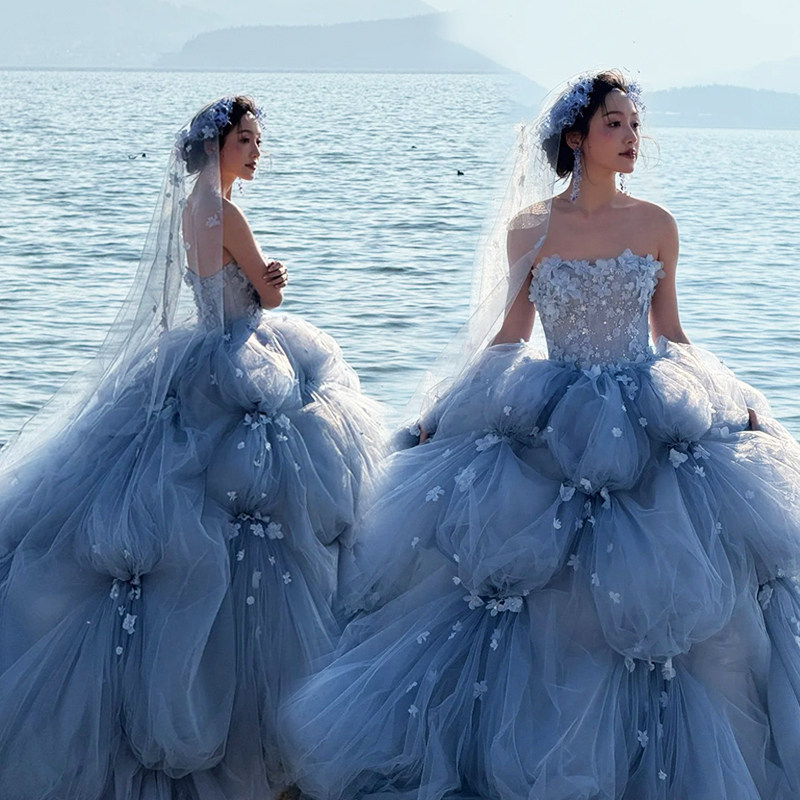 - 婚纱 拖尾 抹胸