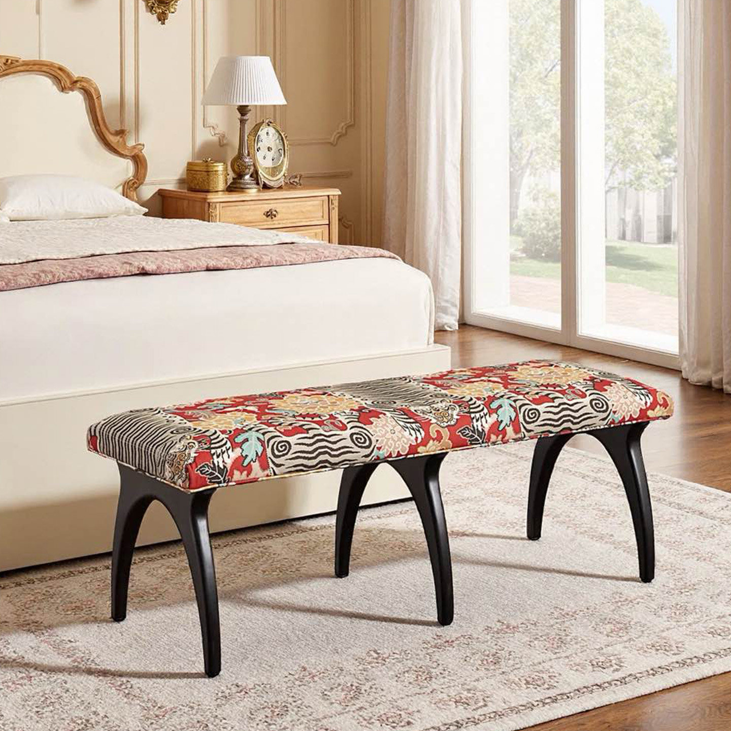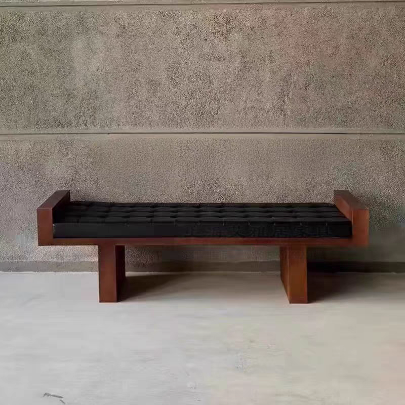 中古实木床尾凳设计师创意侘寂风客厅入户酒店民宿卧室布艺换鞋凳
