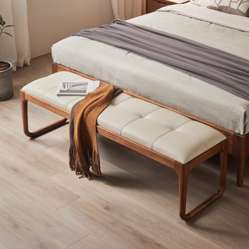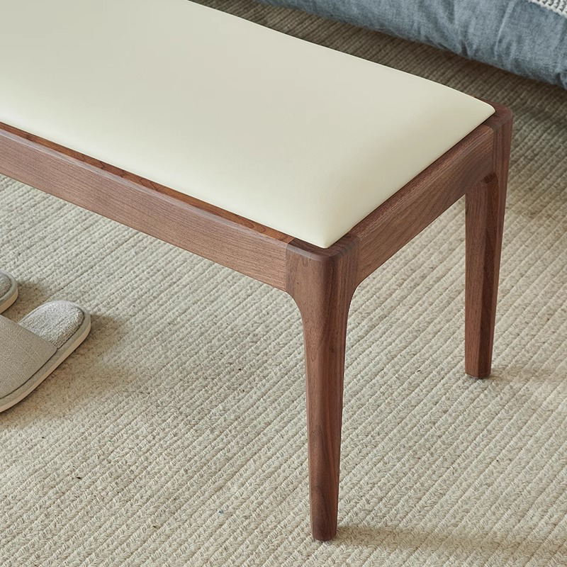 水墨兰亭北美黑胡桃实木床尾凳北欧简约床边原木软包长凳家用床榻