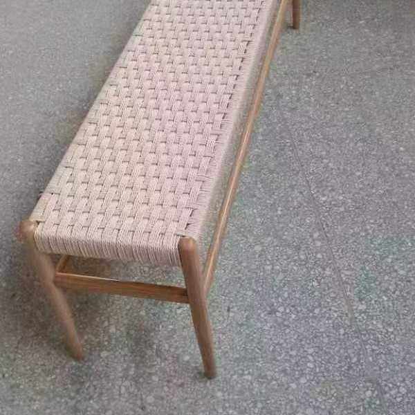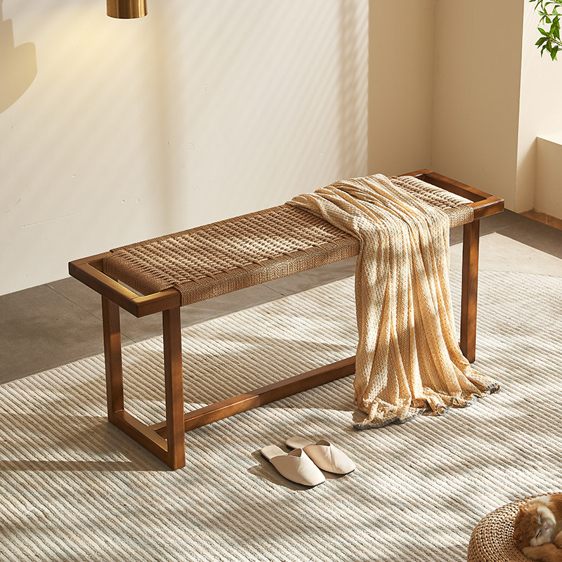 复古实木床尾凳卧室客厅设计师绳编餐凳沙发长条凳简约现代小户型