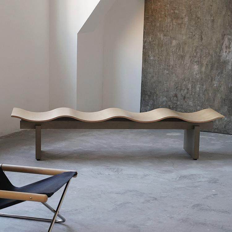 北欧简约波浪凳实木床尾凳设计师长凳创意餐边凳换鞋凳办公区凳子