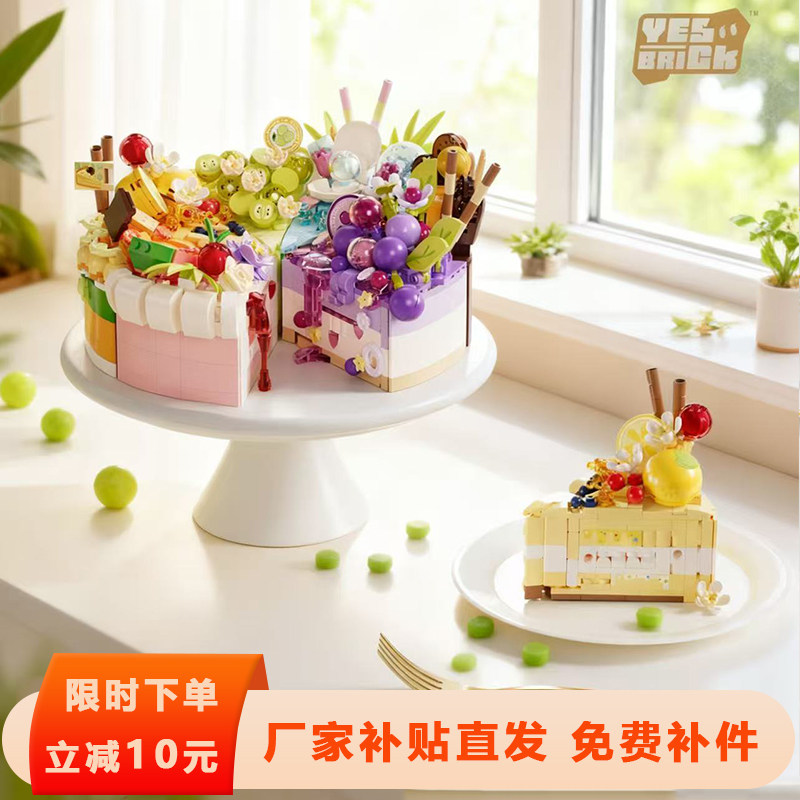 砖也生日蛋糕积木模型儿童益智玩具拼装潮玩房间摆件小孩生日礼物