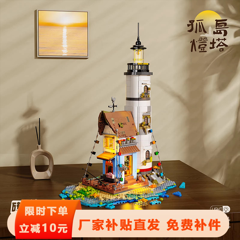 砖也孤独灯塔拼装积木码头酒吧房间摆件儿童益智玩具小孩生日礼物