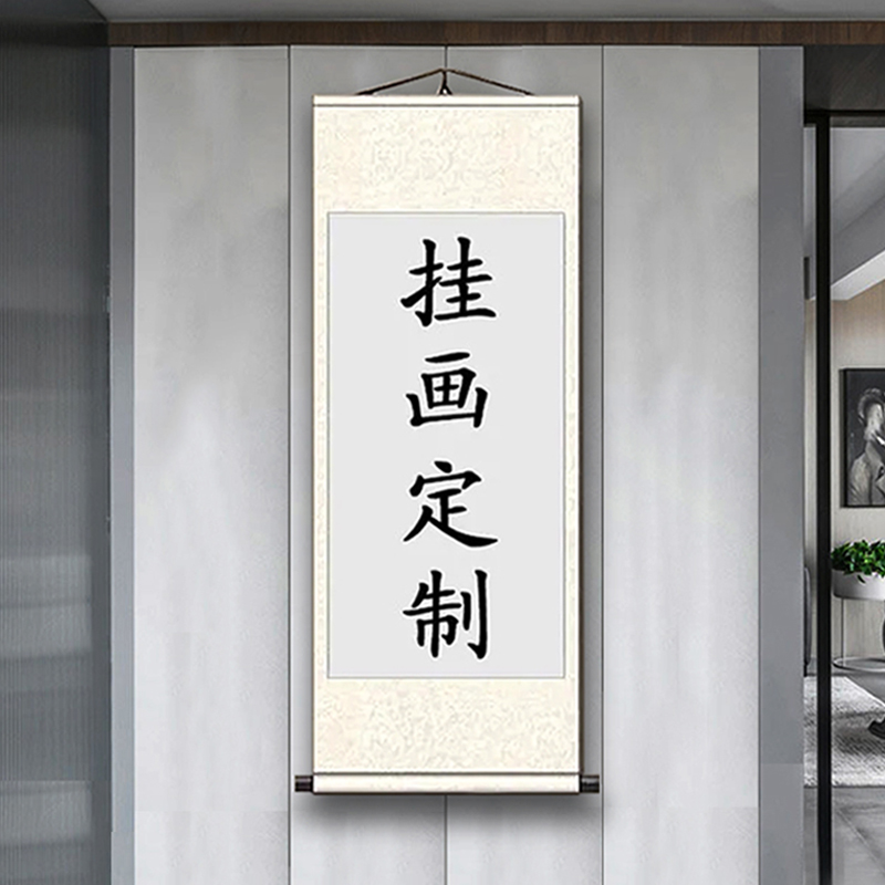 挂画定制来图定做画卷丝绸空白挂轴装饰画办公室书法字画装裱卷轴