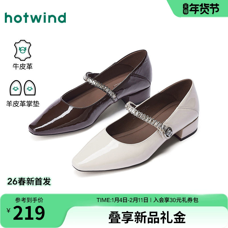 热风尖头玛丽珍鞋女2026年春季新款法式粗跟浅口单鞋通勤女鞋子