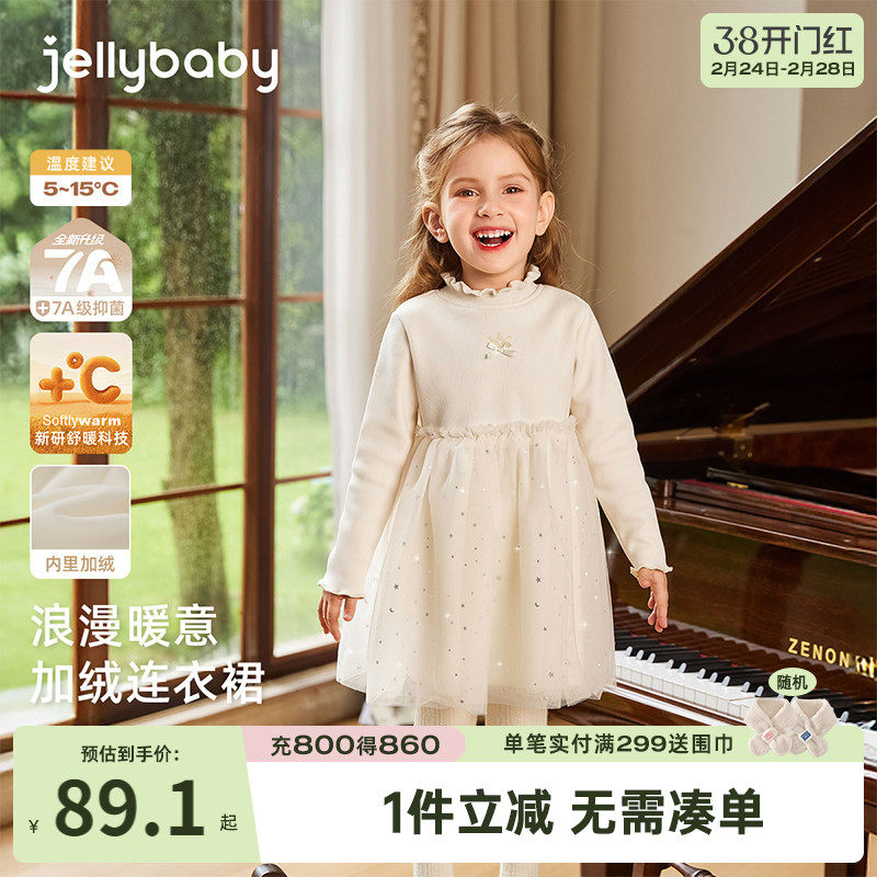 女童连衣裙秋冬款2026新款加绒冬天女孩红色年服儿童公主裙子冬季