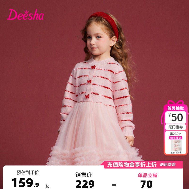 笛莎童装女童连衣裙冬季新款儿童女孩宝宝加绒针织公主裙红色新年