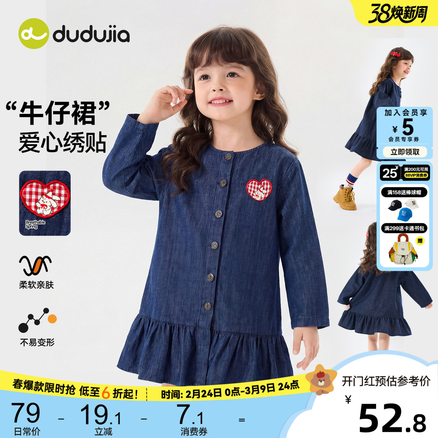 嘟嘟家女童连衣裙春秋宝宝裙子女宝公主裙红色儿童牛仔裙衣服春装