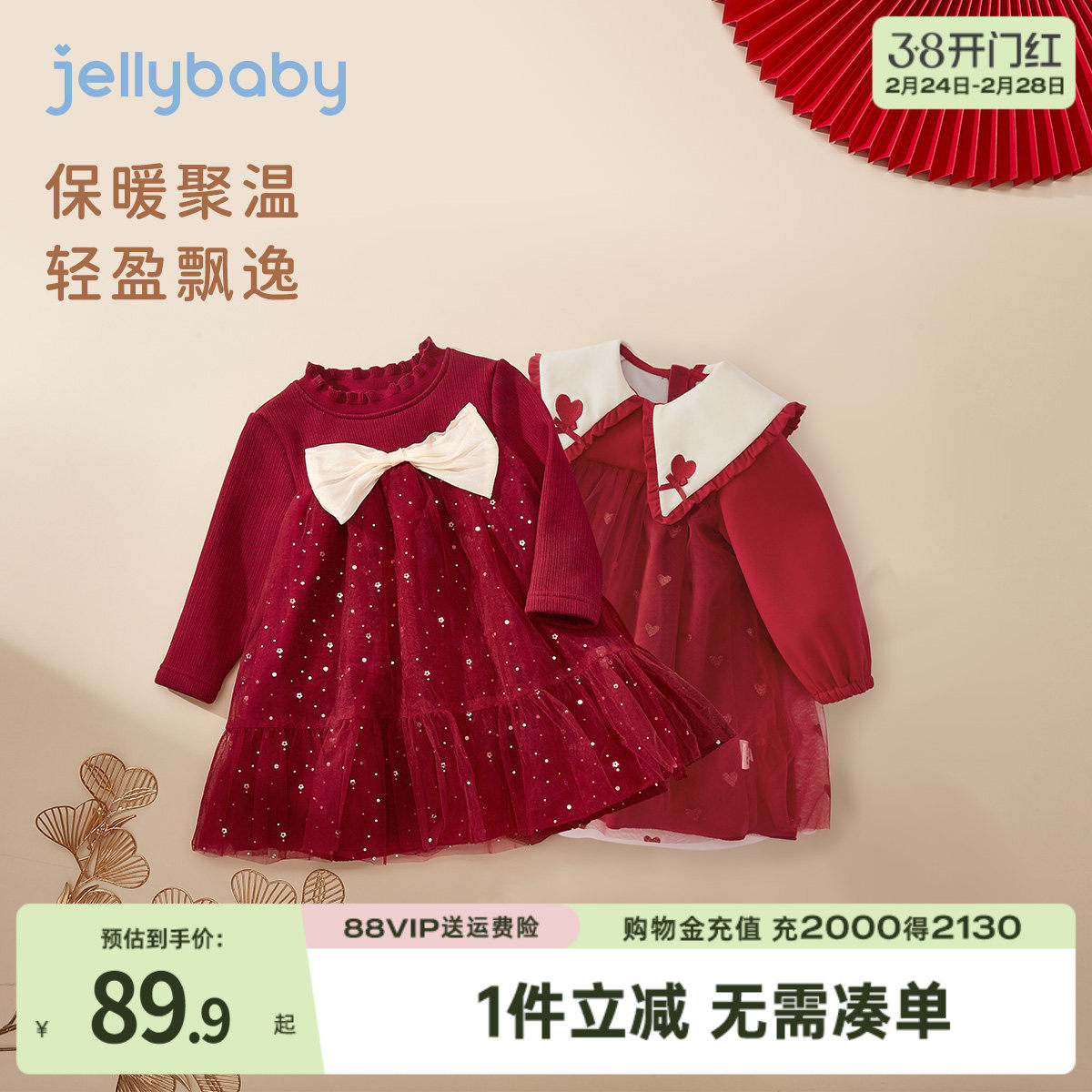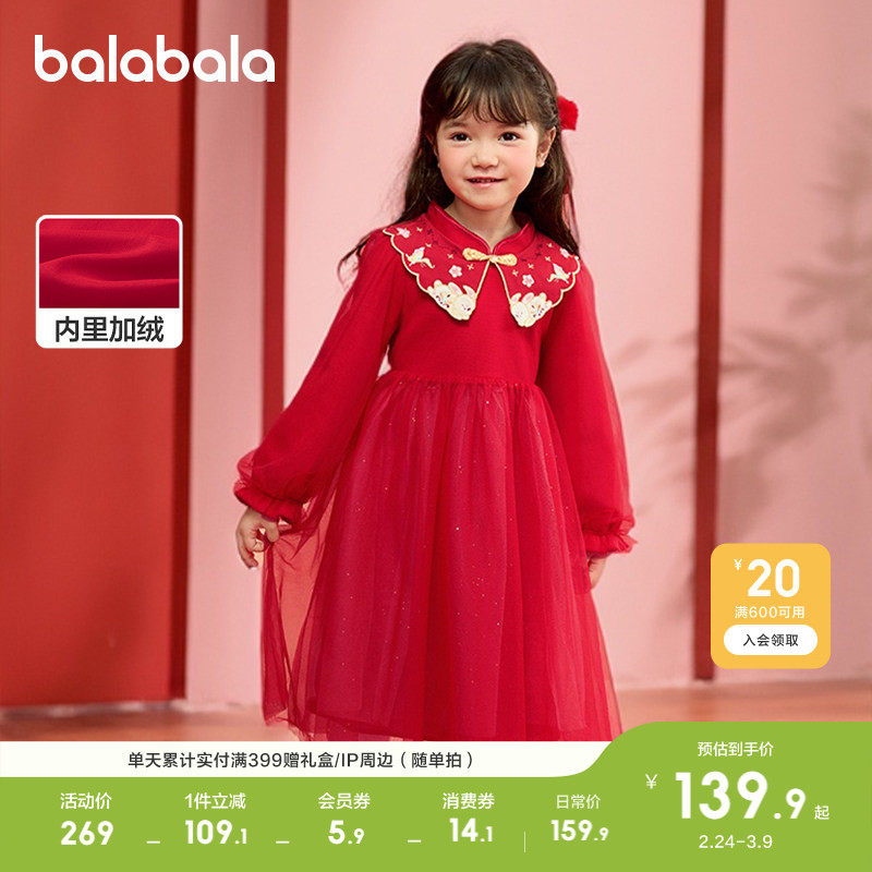 巴拉巴拉女童连衣裙宝宝拜年裙子冬装新款童装儿童红色洋气公主裙