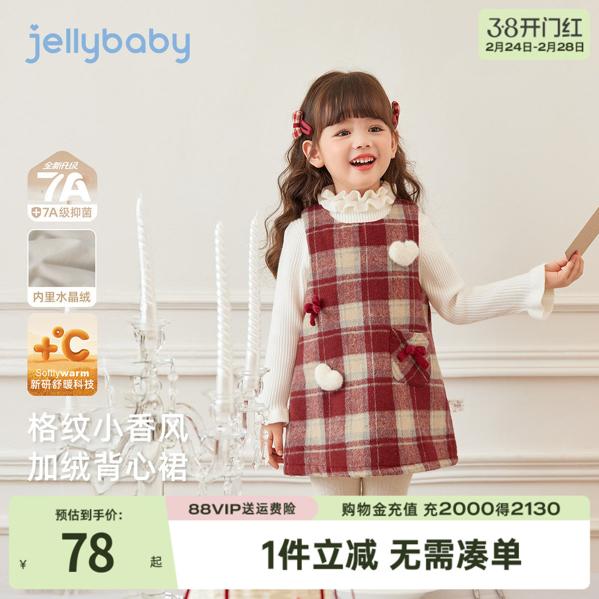 女童裙子加绒背心裙宝宝红色格纹公主裙小礼服新年连衣裙冬季新款