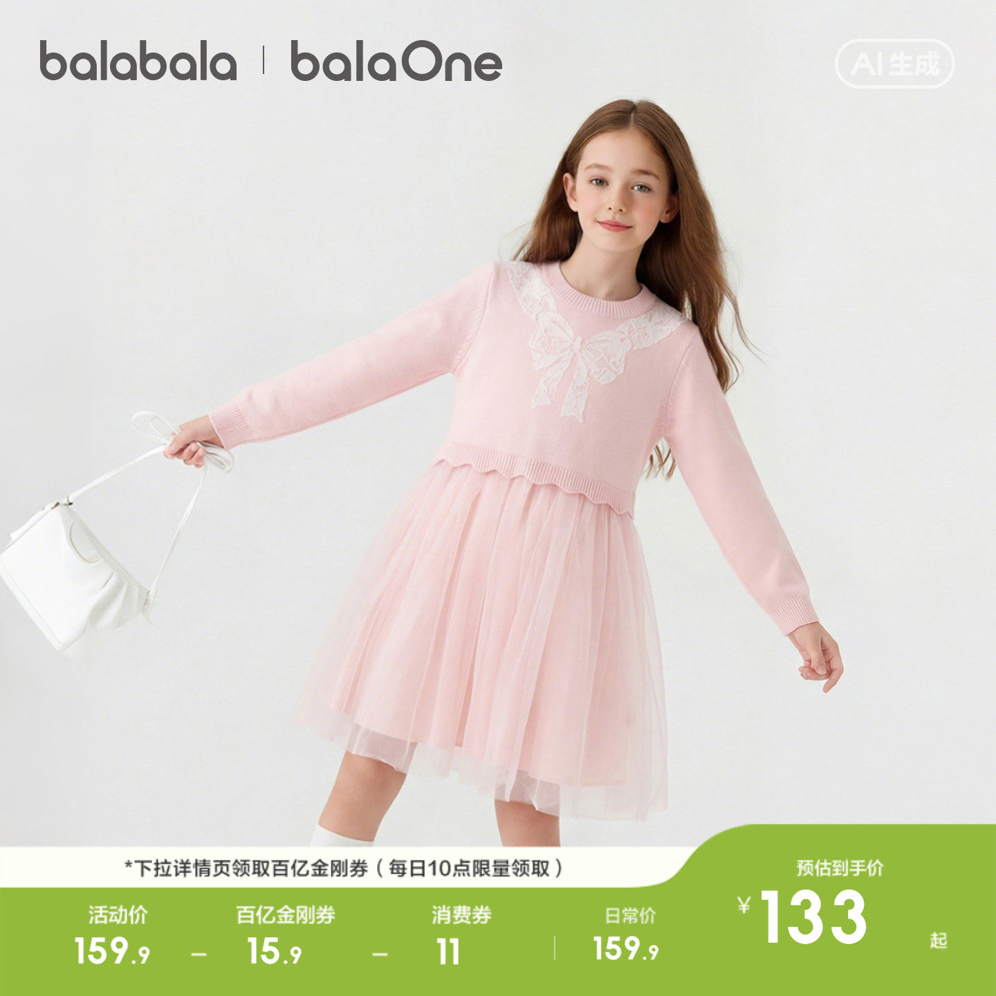 巴拉巴拉童装女童连衣裙2026新春秋装网纱儿童裙子红色公主裙洋气