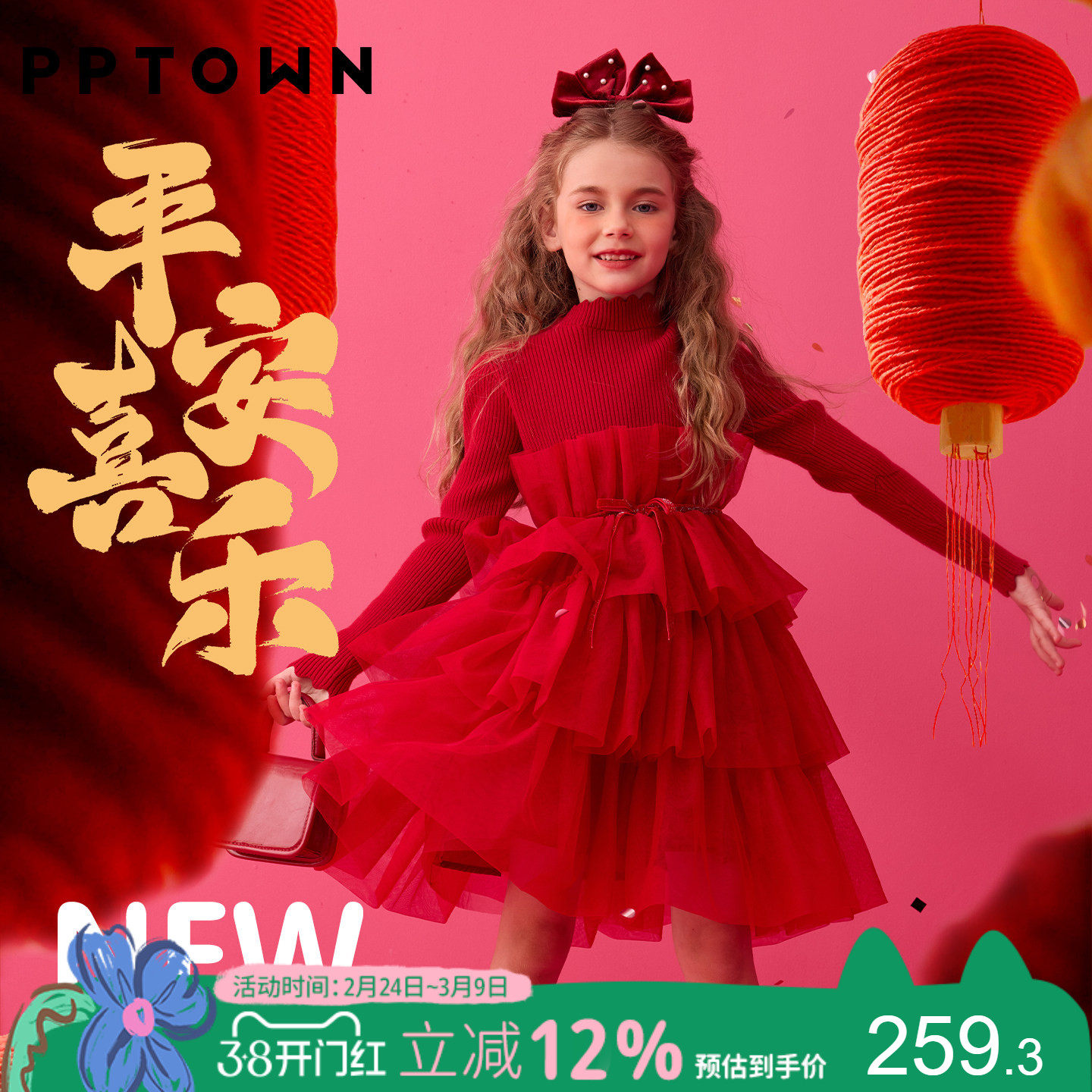 女童红色礼服连衣裙冬新款年服儿童拜年服大童毛衣公主裙新年衣服