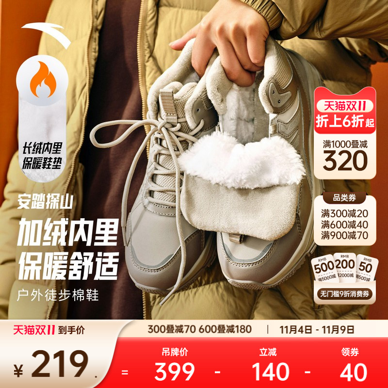 安踏探山棉鞋丨加绒加厚高帮休闲女鞋2025冬季新款保暖户外运动鞋