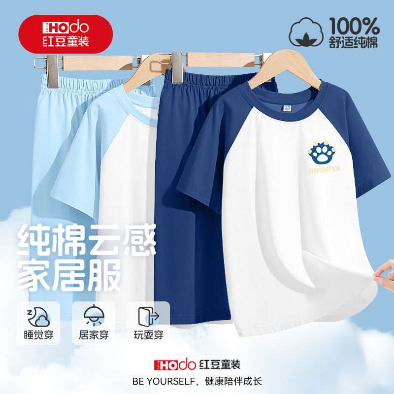 红豆童装男童睡衣夏季儿童2026新款纯棉短袖上衣薄男孩家居服套装