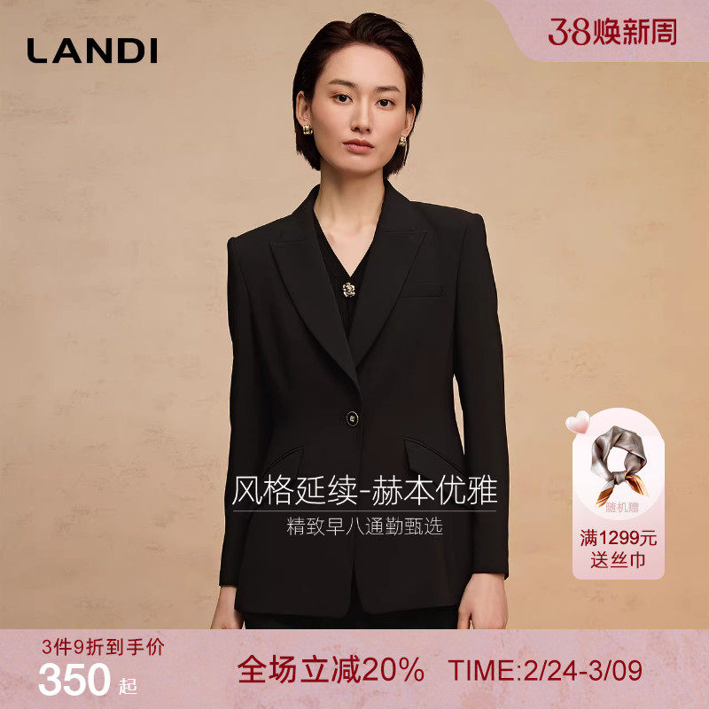 [黑天鹅套装]LANDI蓝地赫本风优雅通勤西装外套女微喇西裤春新品