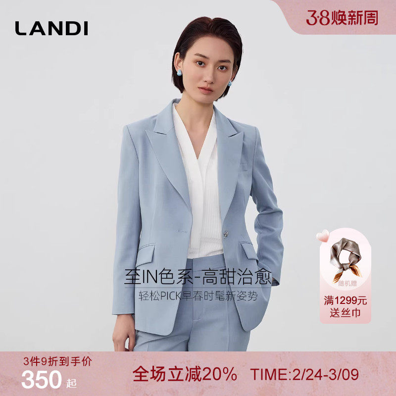[至IN色系]LANDI蓝地涧石蓝高甜治愈修身西装外套女套装春新品