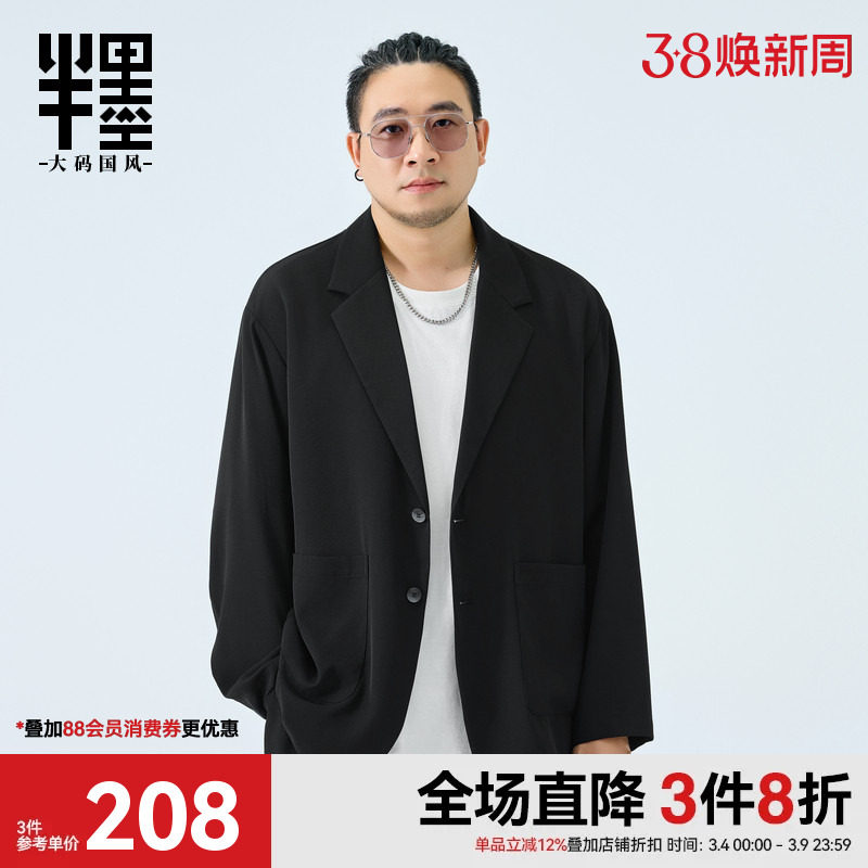 半墨平驳领休闲西服男春季宽松加肥加大单排扣西装外套特大码男装